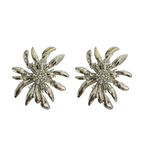 Pendientes pétalos plateados y estrella cristal