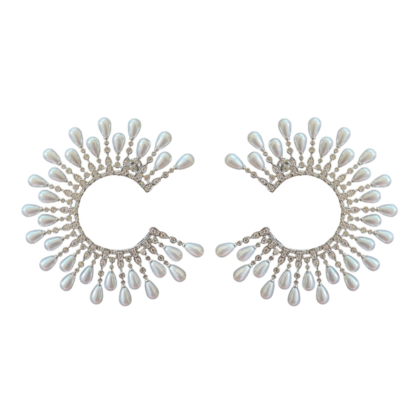 Pendientes media luna plata y perlas