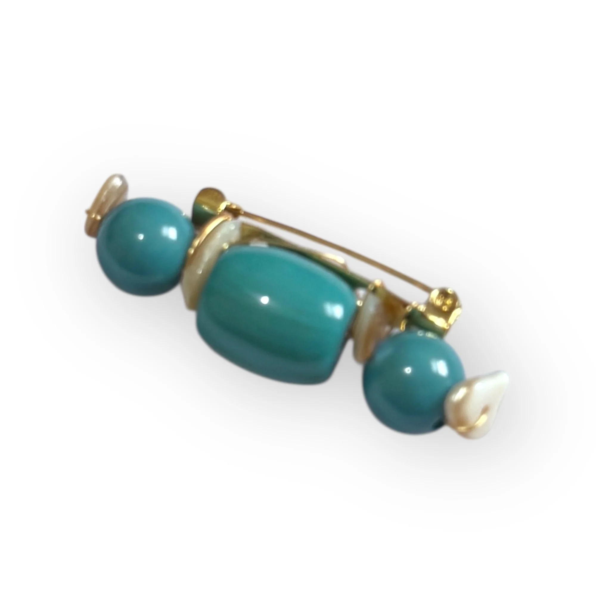 Broche cuentas turquesa y coralitos beige