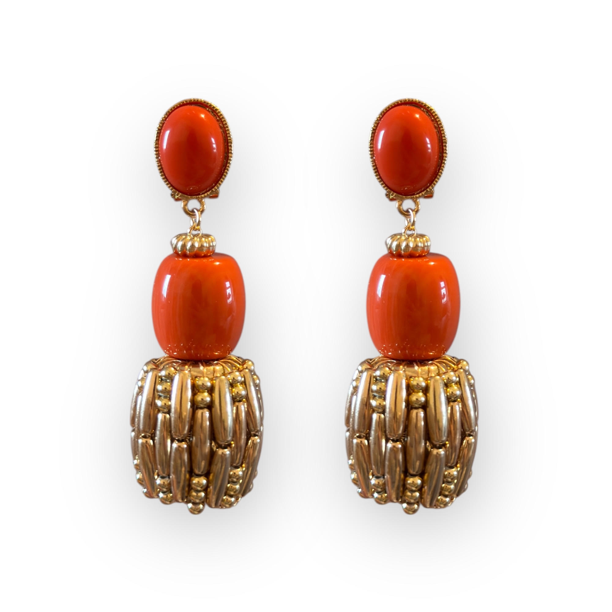 Pendientes de latón y resina bañados en oro brillo. Hipoalergénicos. Tipo de cierre: tornillo.