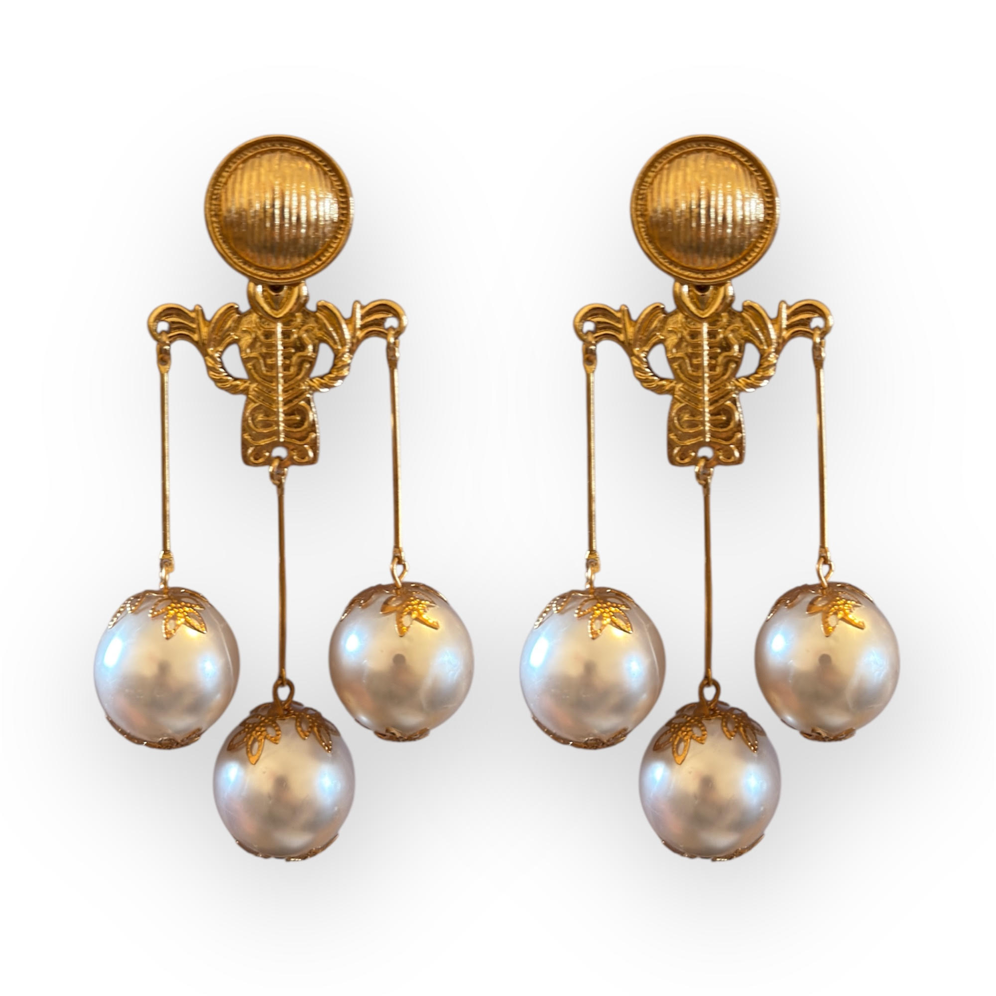 Pendientes de latón y resina bañados en oro brillo. Hipoalergénicos. Tipo de cierre: tornillo. 11x4cm.