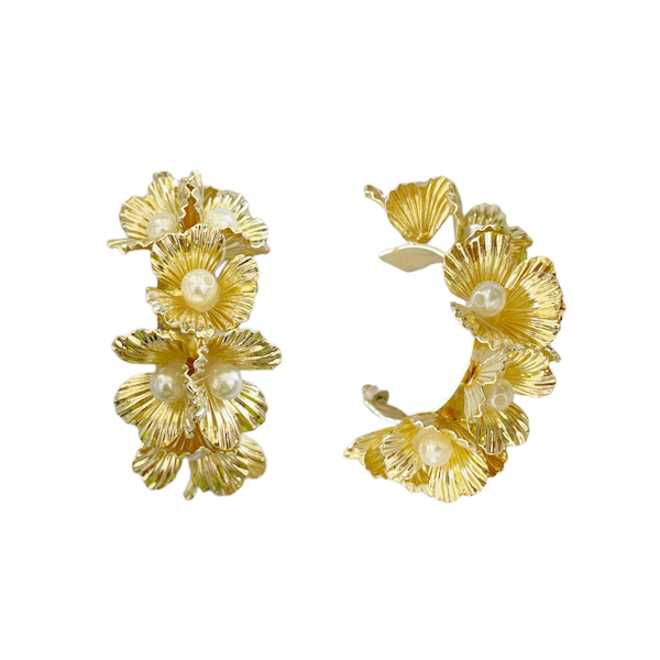 Pendientes argolla pétalos oro y perlas