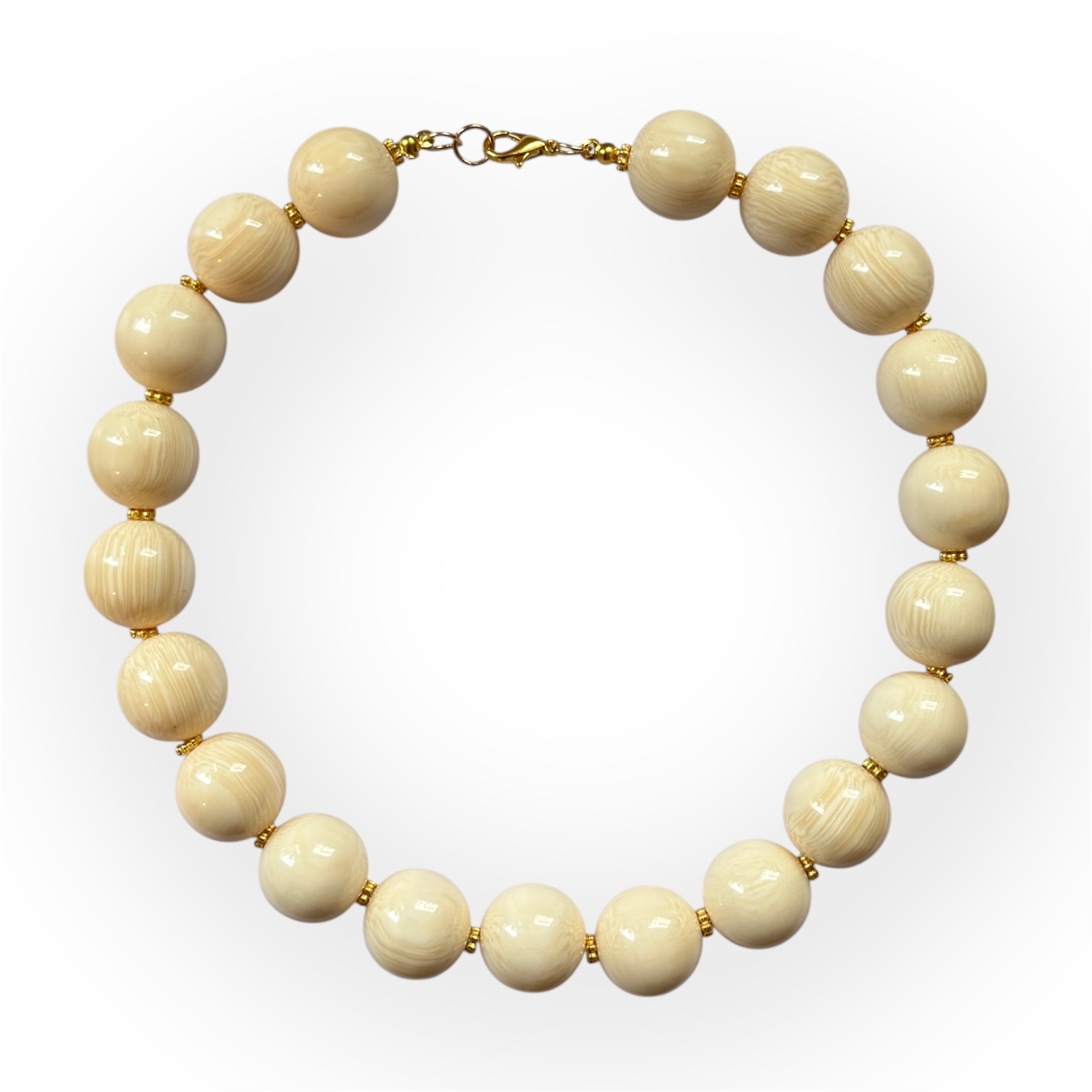 Collar bolas grandes hueso y oro