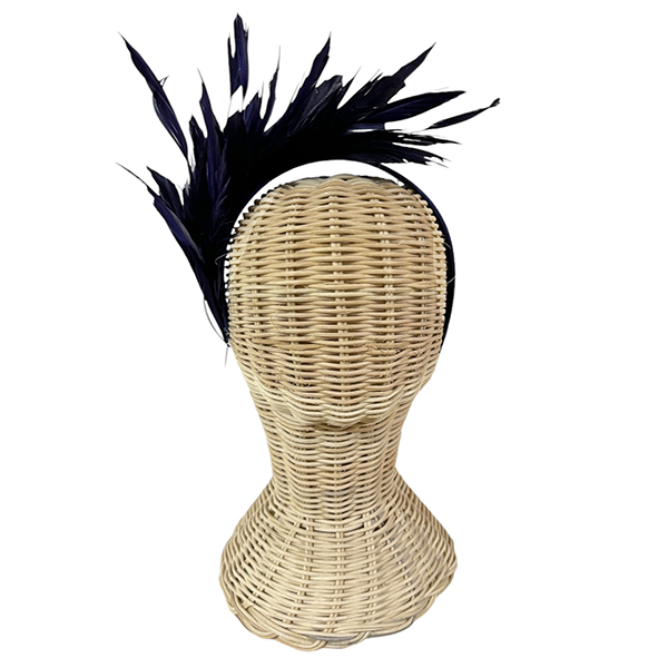 Diadema de plumas de gallo en color azul marino con base del mismo color.