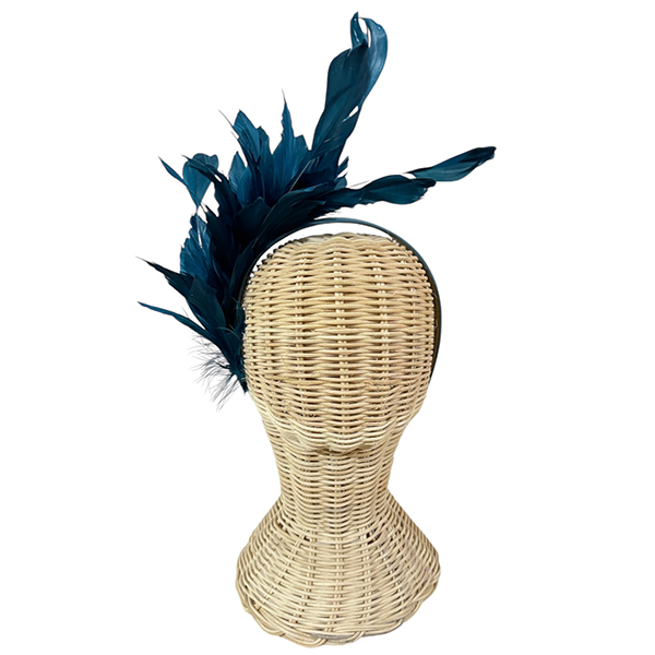 Diadema de plumas de gallo en color azul petroleo con base del mismo color.