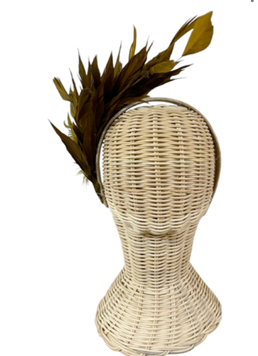 Diadema de plumas de gallo en color tonos tierra con base del mismo color.
