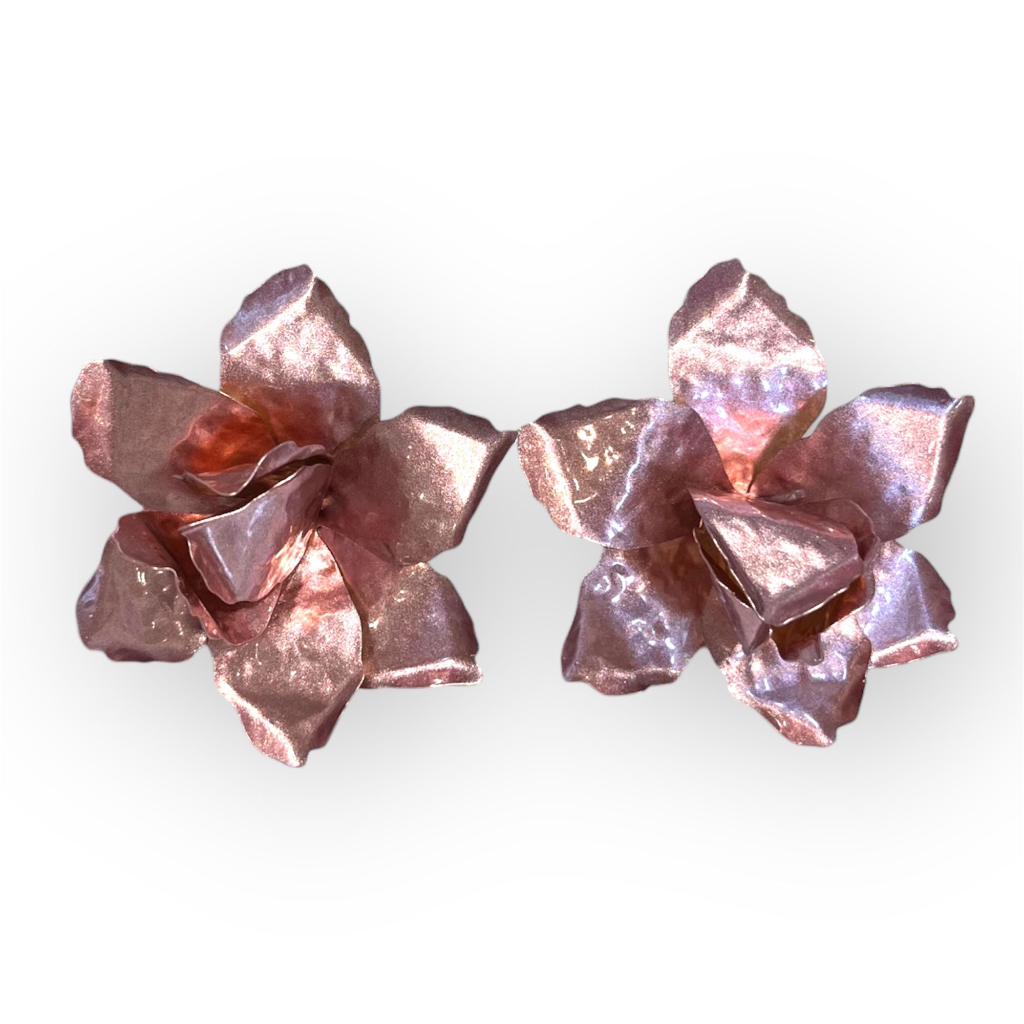 Pendiente maxi flor esmaltada rosa
