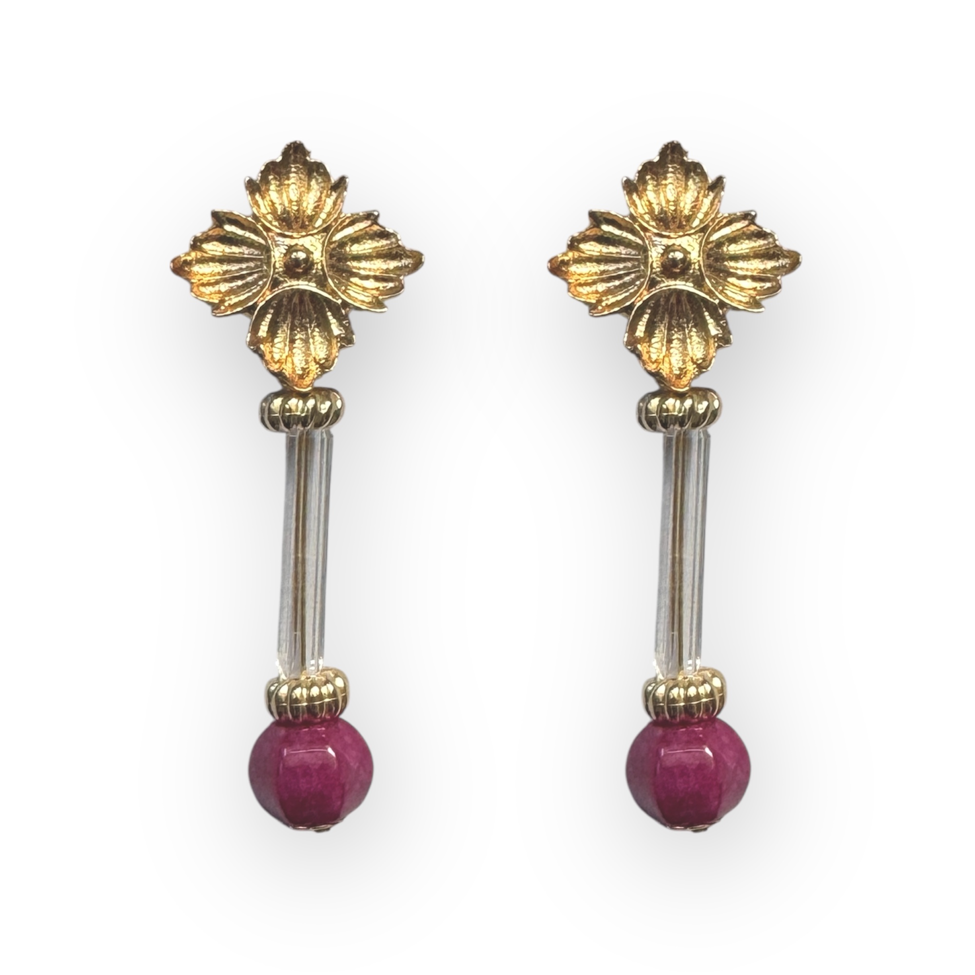 Pendientes alargados piedra buganvilla