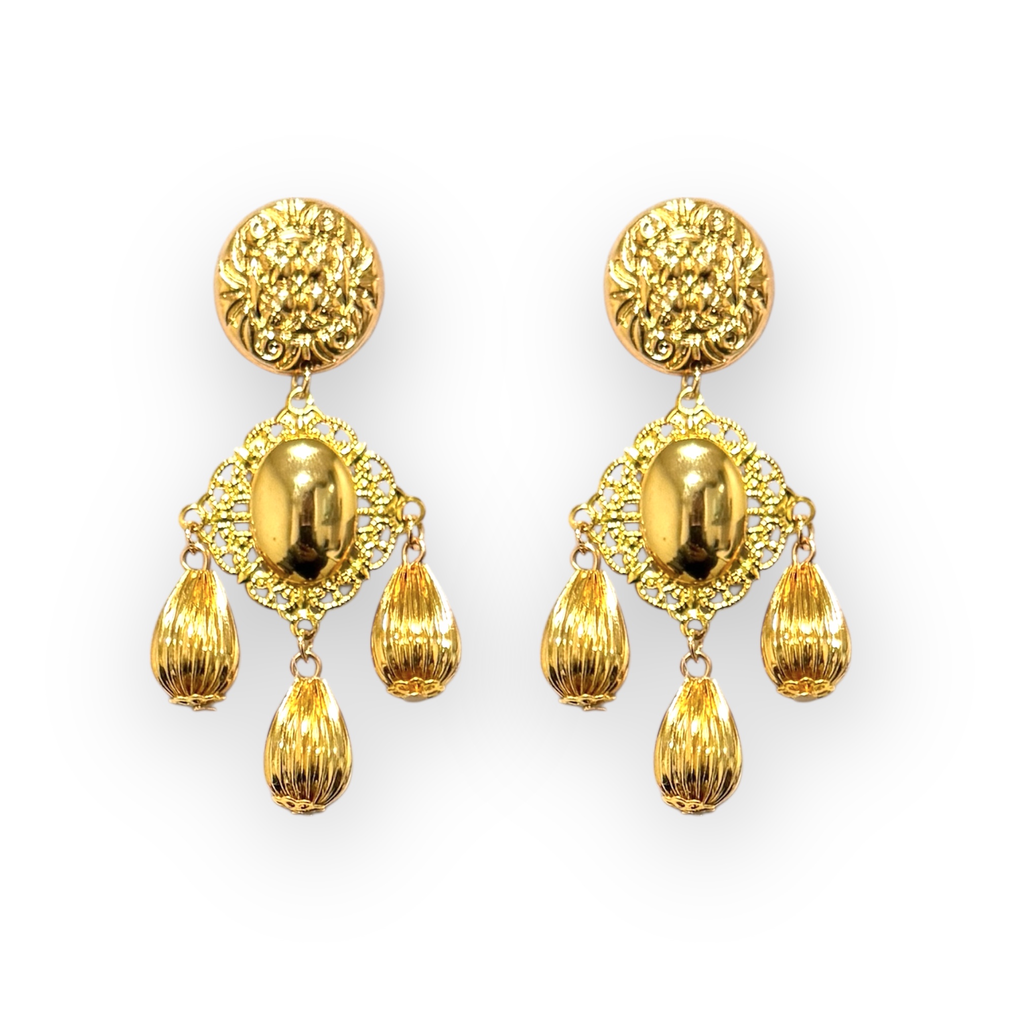 Pendientes de latón con baño oro brillo. Hipoalergénicos.