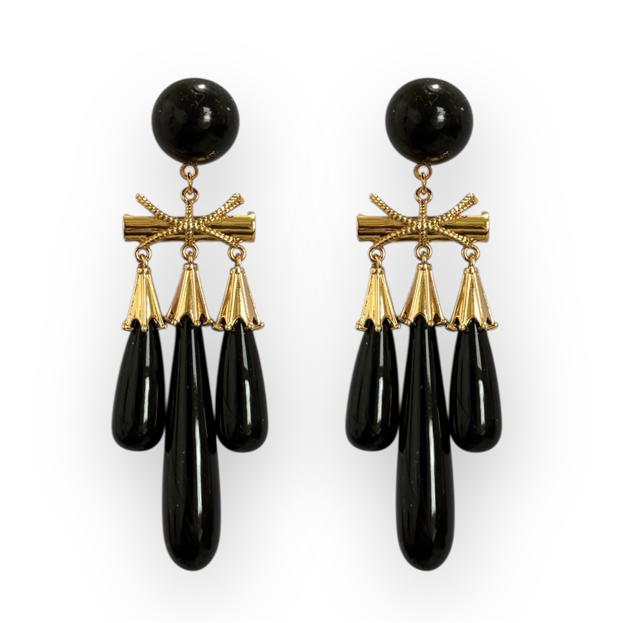 Pendientes clásicos tres lágrimas negro