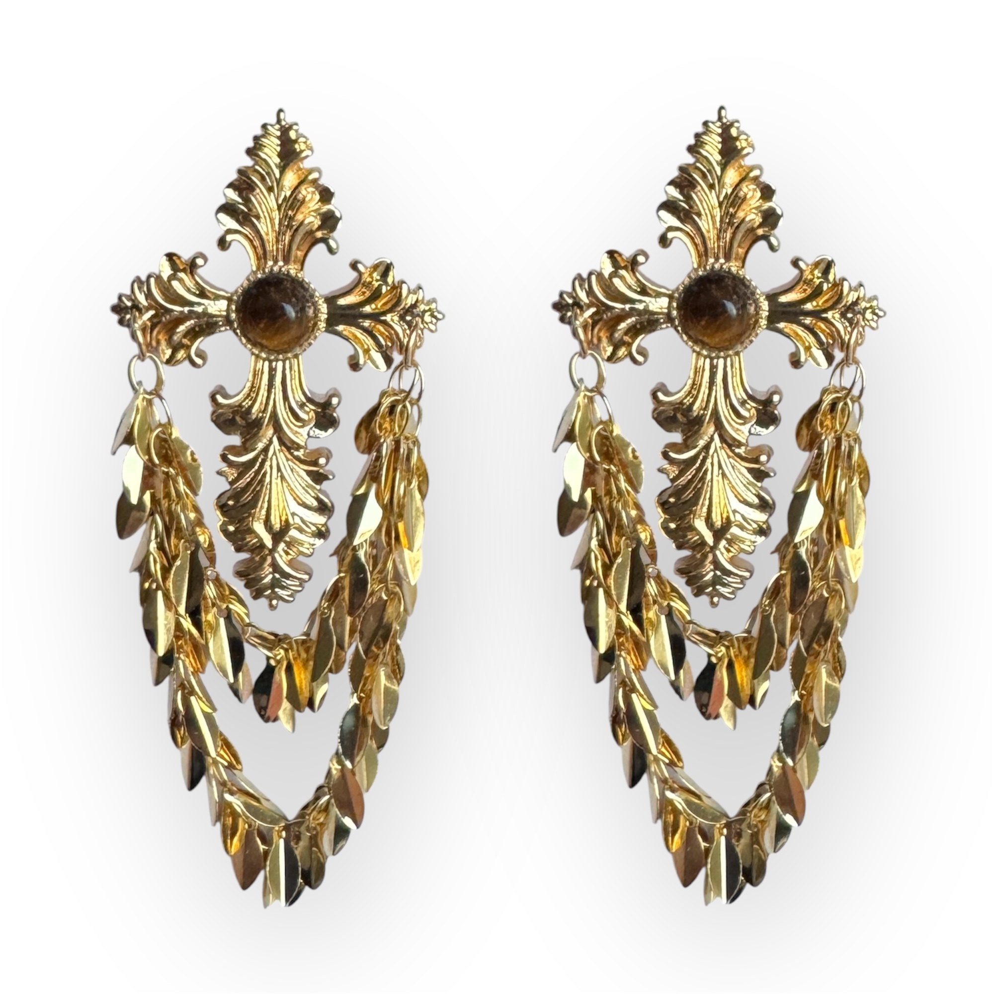 Pendientes cruz y cadenas oro