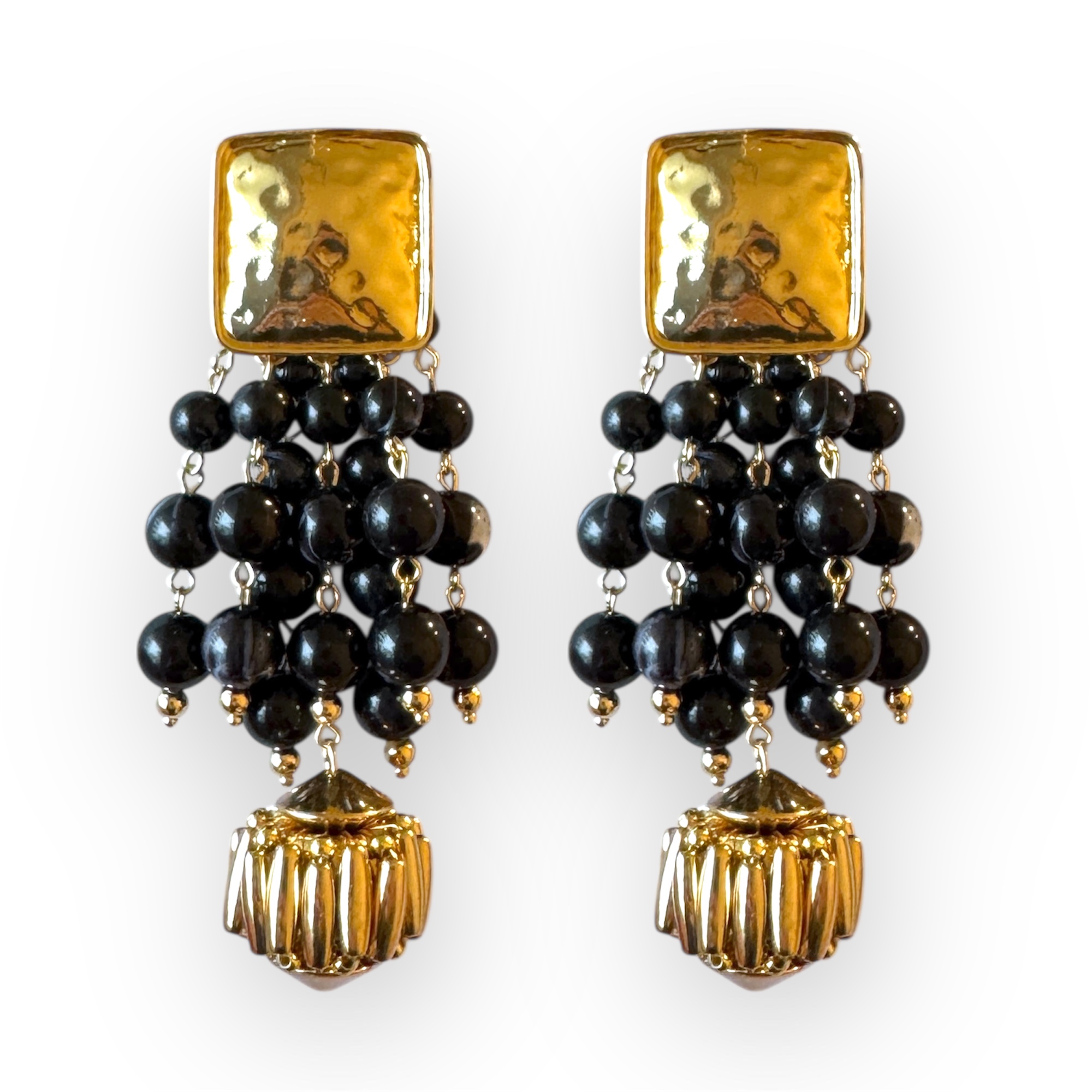 Pendientes cuadrado oro y cascada bolas negro