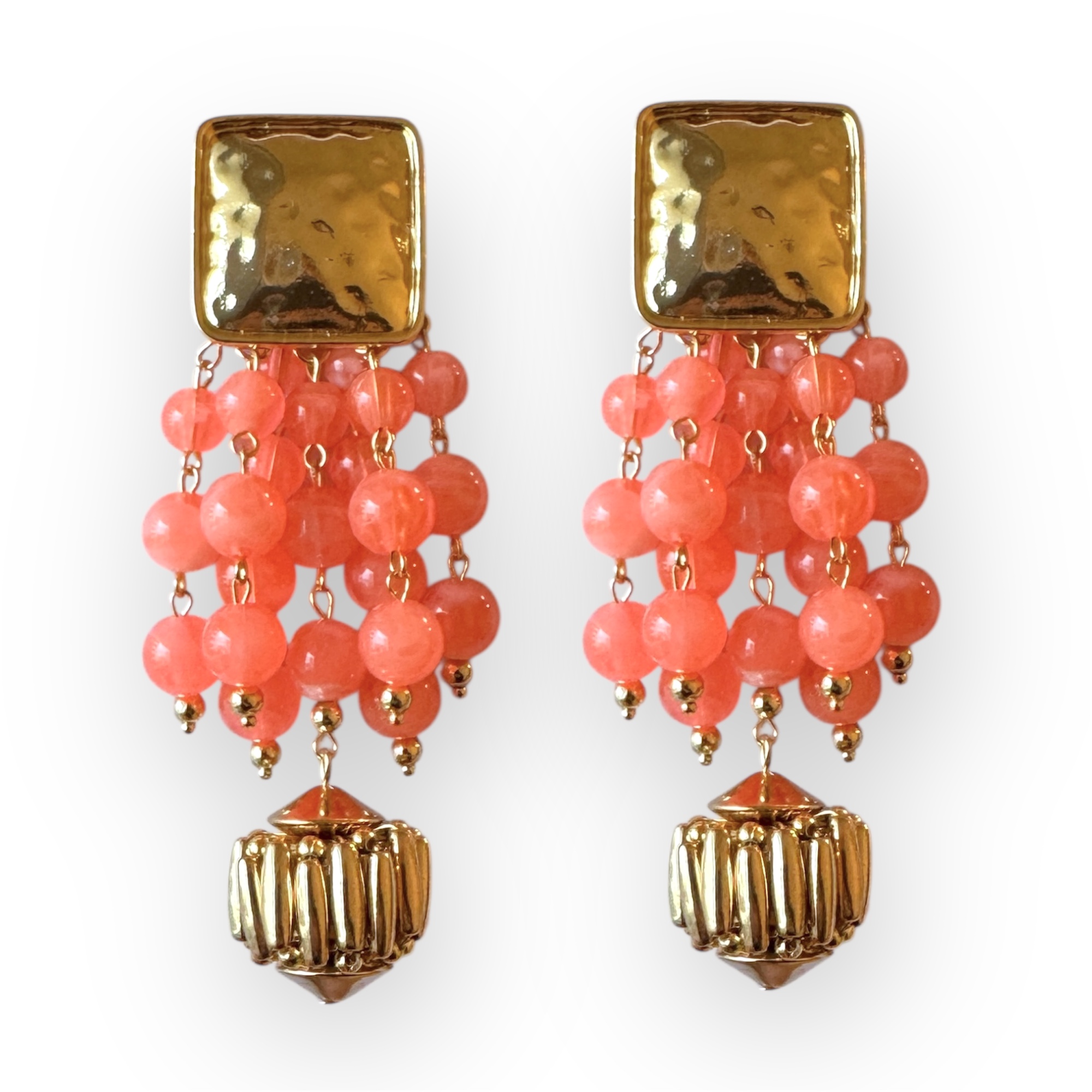Pendientes cuadrado oro y cascada bolas salmon