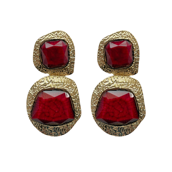 Pendientes de metal y resina en color rojo oscuro/granate.  Hipoalergénicos.