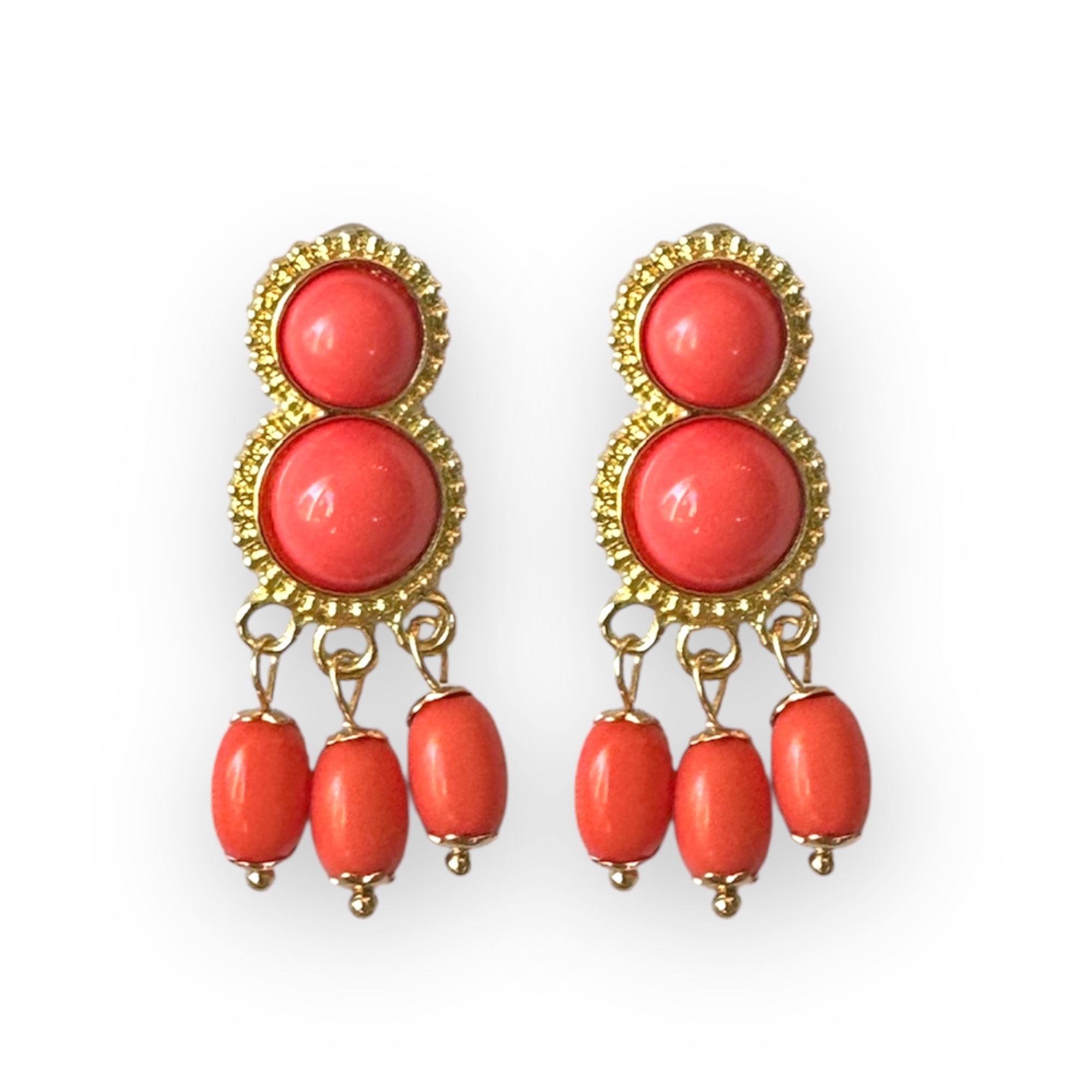 Pendientes de latón chapado en oro y resina. Hipoalergénicos. Tipo de cierre: tornillo.