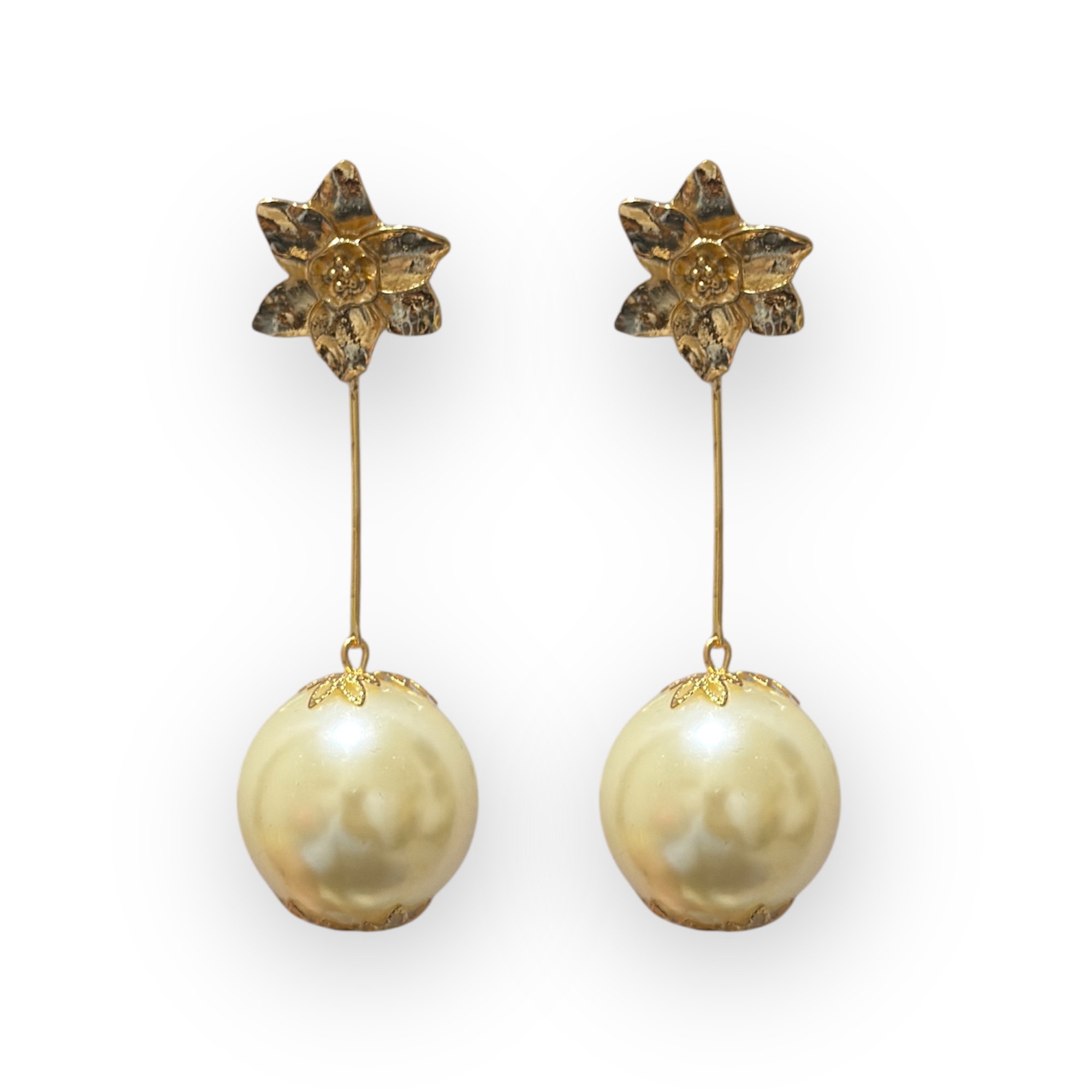 Pendientes de latón con baño oro brillo y resina. Hipoalergénicos. Tipo de cierre: tornillo.
