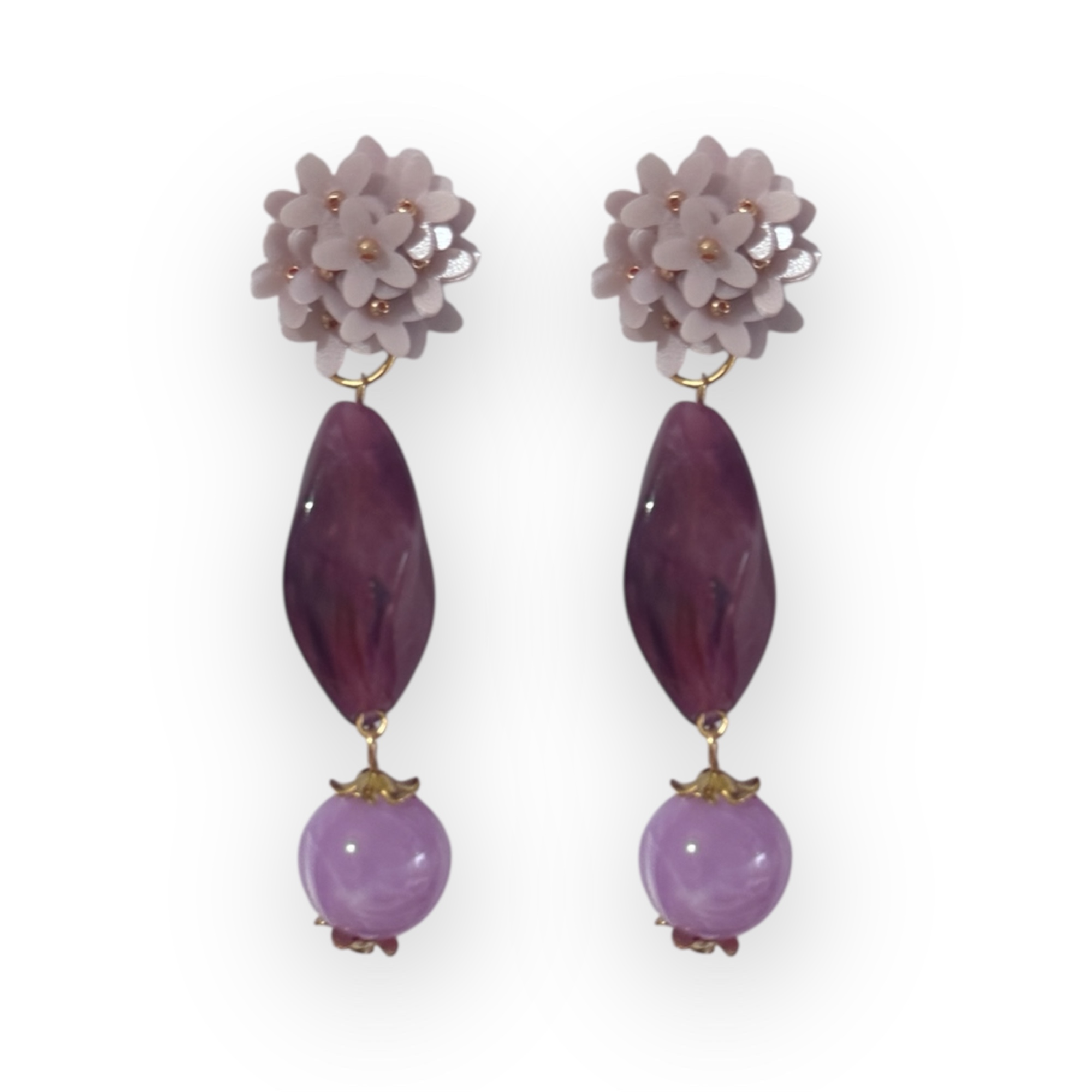 Pendientes de latón y resina. Hipoalergénicos. Tipo de cierre: tornillo