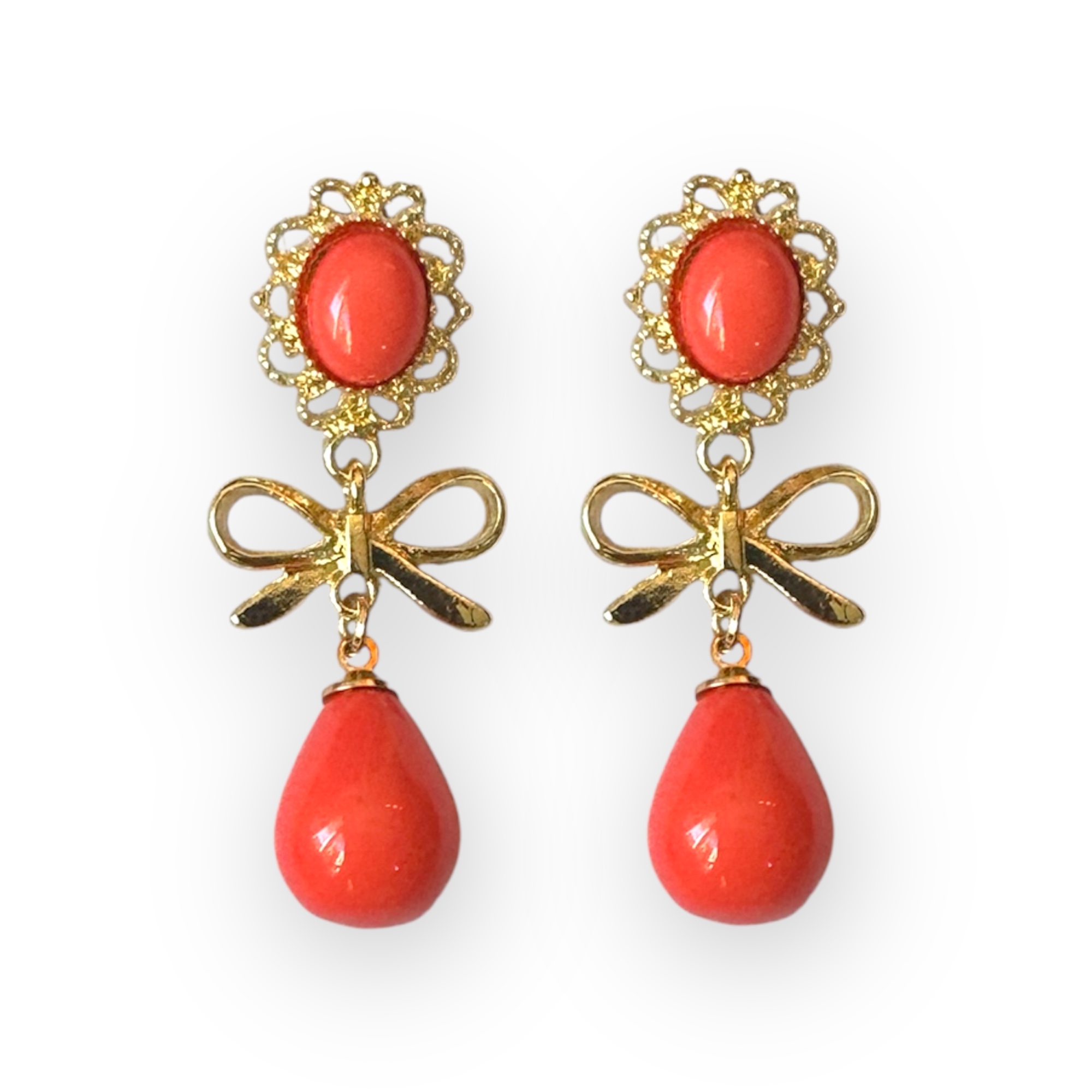 Pendientes de latón chapados en oro brillo y resina. Hipoalergénicos. Tipo de cierre: tornillo.