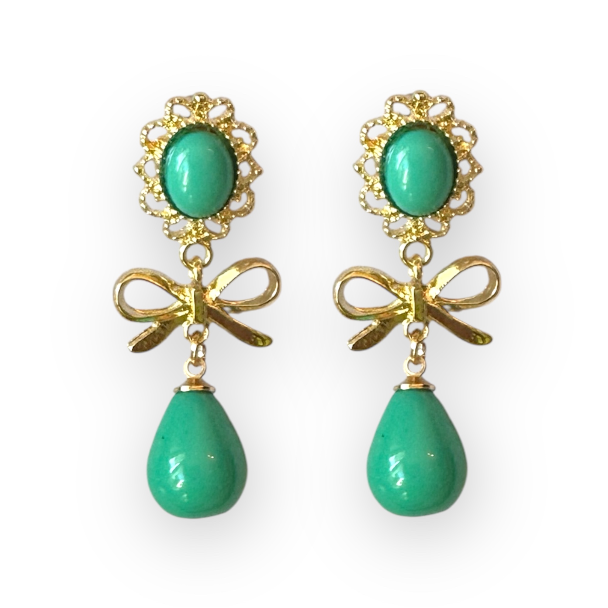 Pendientes de latón chapados en oro brillo y resina. Hipoalergénicos. Tipo de cierre: tornillo.