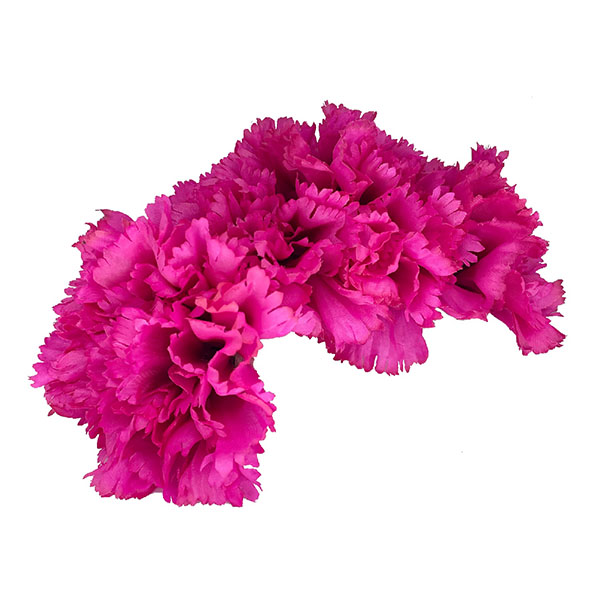 Ramillete de claveles en color fucsia. Lleva un peinecillo en su base para su cómoda colocación.
