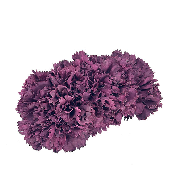 Ramillete de claveles en color vino. Lleva un peinecillo en su base para su cómoda colocación.
