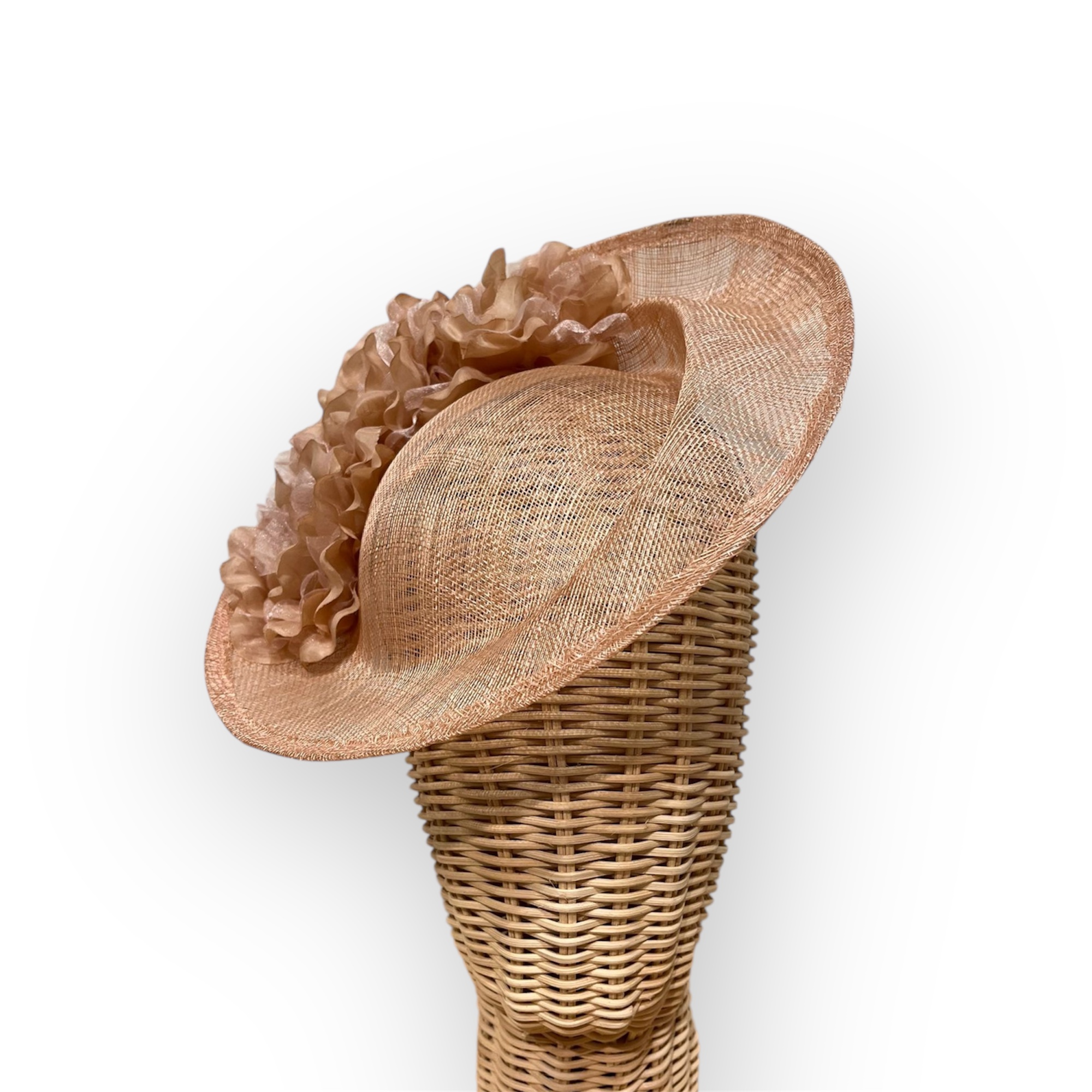 Tocado sinamay y flores nude